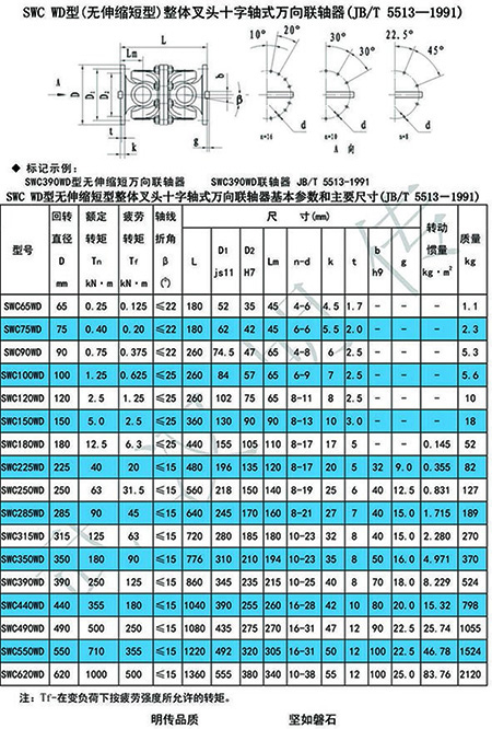 SWC型整體叉頭十字軸式萬向聯軸器分為BH、BF、WD、CH、WH、WF和WD七種型式。