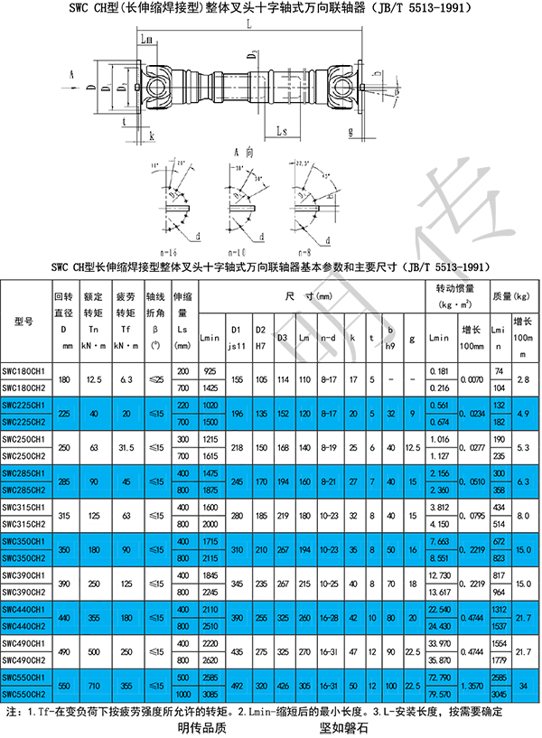 1.具有較大的角度補償能力,SWC型軸線折角可達15°~25°,SWP型可達10°。