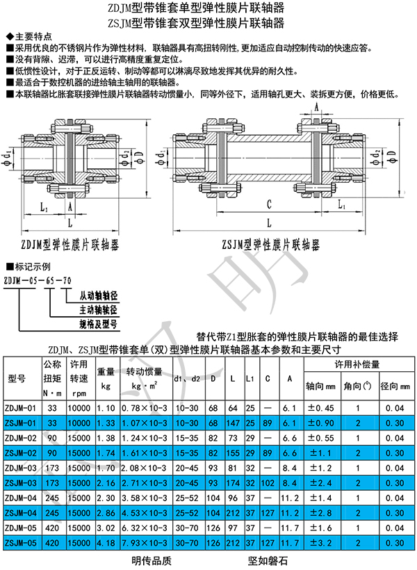 ZDJM ZSJM型膜片聯軸器主要特點: